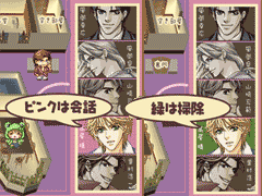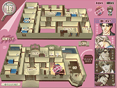 | このマップでは、屋敷の住人と「会話」をするか、部屋を「掃除」するかのどちらかが選べるんだ。屋敷の住人には、それぞれスケジュールがある。期限が限られているからな、それらをふまえて効率よく選ぶ必要があるぞ。 |